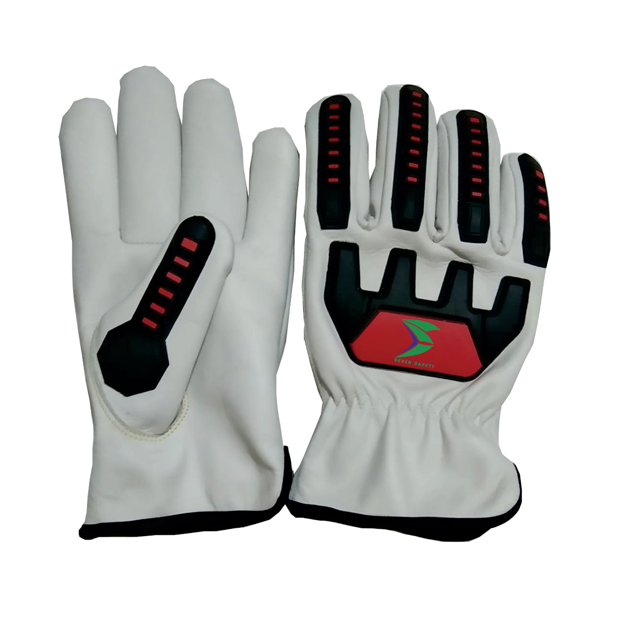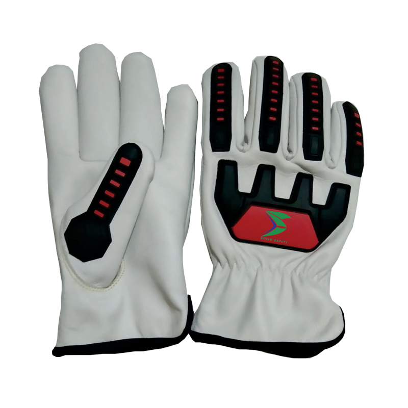 Crafted from premium, supple white leather, the SS-8001 gloves combine classic comfort with modern protective features. The standout innovation is the strategically placed Thermoplastic Rubber (TPR) impact protection on the back of the hand and fingers. This advanced shielding, visible as the prominent black and red accents, is specifically designed to absorb and dissipate impact energy, safeguarding your hands from crushing injuries, pinches, and abrasions common in heavy industries. The vivid green “Seven Safety” logo embedded within the TPR on the knuckles not only signifies authenticity but also reinforces the brand’s commitment to worker safety.