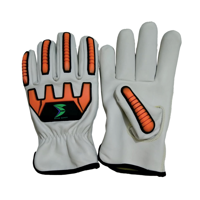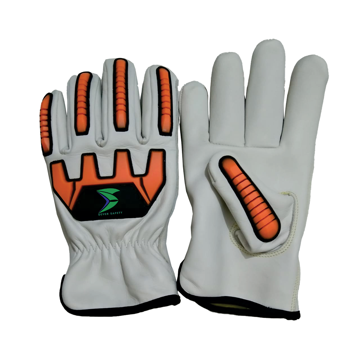 Seven Safety SS-8002 High-Visibility Impact Protection Work Gloves | Premium Leather & Orange TPR | Enhanced Safety for Construction, Oil & Gas, Roadwork | Canada